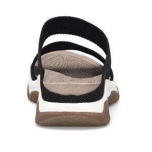 Bionica Women's Nilsa Water-Friendly Slide Sandals in Black. Be ready for a day at the beach or lake in Bionica's Nilsa slide sandals, featuring knit fabric straps, a fast-drying, water-friendly EVA-cushioned midsole and a grippy lugged outsole.
