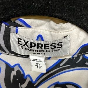 Express The Portofino Shirt Slim Fit White Black Blue Printed Size XS