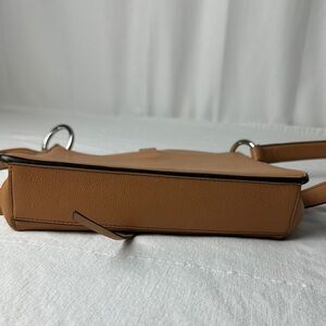 Elegant tan leather shoulder bag with a sleek design. Perfect for any occasion.