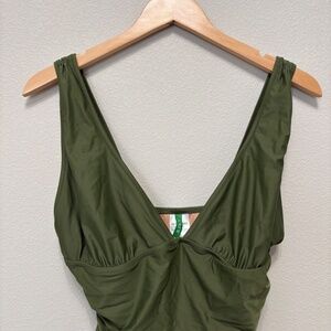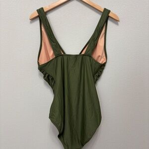 J. Crew Ruched V-neck One-piece Swimsuit - Olive Green, 14