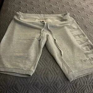 Stylish heather gray shorts with drawstring. Features ribbed texture and subtle branding.
