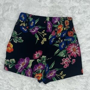 These high-waisted shorts from Express feature a striking floral pattern on a sleek black background, offering a chic and modern look. The lightweight fabric ensures comfort and ease, making them perfect for any outing. With a relaxed fit and mid-thigh length, these shorts are both stylish and versatile.