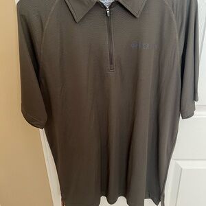 Experience the perfect blend of style and comfort with the FootJoy Pink Polo Shirt. This vibrant polo features subtle horizontal stripes, offering a sporty yet casual look. Ideal for any occasion, it is crafted from lightweight fabric for all-day wear. Also a dark green beretta zip up shirt. 2 shirt for 1 price