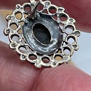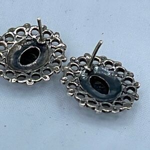 Sterling silver black onyx pierced earrings. Ornate framing around the stone. Tarnish on backs.