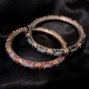 Vintage enamel floral and heart textured bangle bracelets