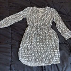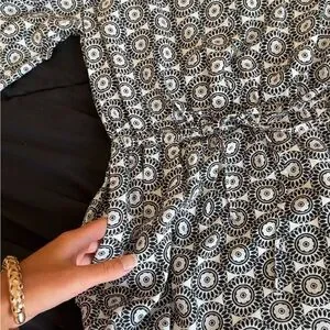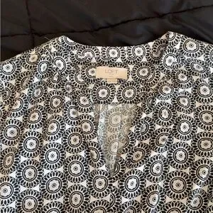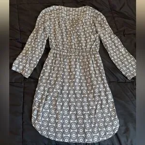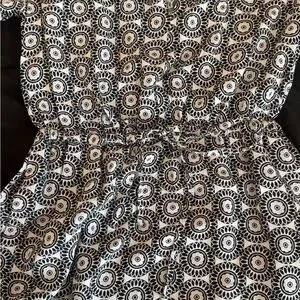 This chic sundress from LOFT showcases a sophisticated black and white pattern on a lightweight fabric, perfect for casual or work settings.