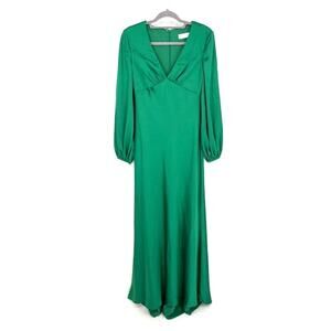 Ieena for Mac Duggal Green Charmeuse Empire Waist Blouson Sleeve Gown – Size 6