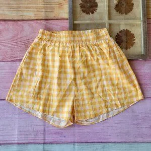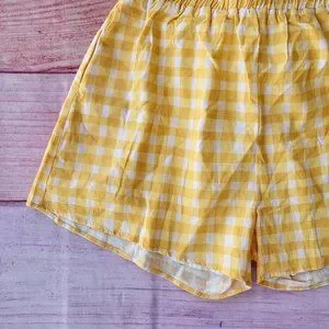 Chic yellow gingham shorts. Comfortable fit. Perfect for casual outings.