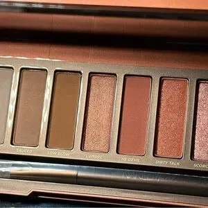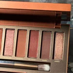 An everyday Naked palette with smooth ivory, smoldering browns, deep reds, and copper eyeshadows.