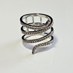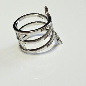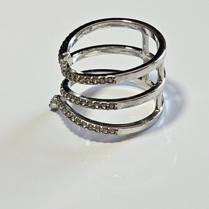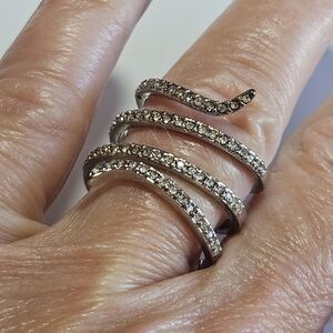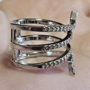 Silver Tone Clear Rhinestone Layered Wrap Ring Size 6.75