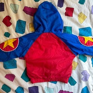 Vibrant kids costume jacket featuring a playful design. 90’s vintage toddler GUC baseball jacket with hood