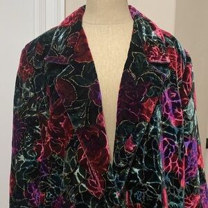 VTG Three Flags Velvet Floral Blazer Jacket Womens 10 Oversized Dark Romantic