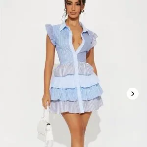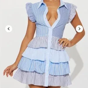 NWOT Striped Blue and White Babydoll Ruffle Mini Dress