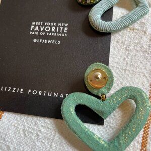 Lizzie Fortunato green heart earrings. Worn only once. They measure approximately 3".