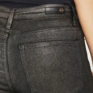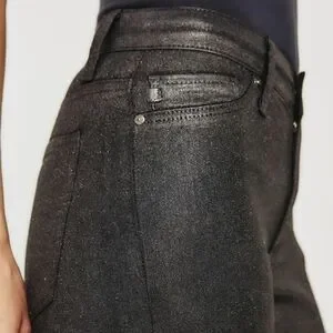 The Farrah Skinny Ankle for women features a pigment spray coating in a gunmetal shade with a shimmering micro-glitter finish. The pair has a sleek silhouette with a flattering mid-rise waist and a skinny fit through the legs, cropped right at ankle length. This women’s skinny jean is designed in 8.5 oz. Double Black Denim for a luxurious feel and comfortable wear.