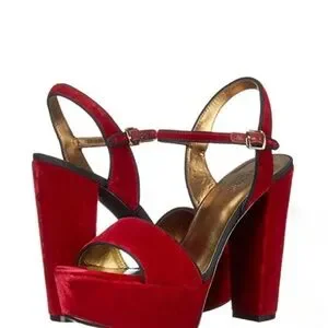 Elevate your style with these striking red platform heels from Nine West. Featuring a luxurious velvet finish, a chunky high heel, and a secure ankle strap, these shoes are perfect for formal occasions or a night out.