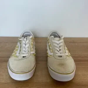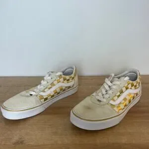 Vans Womens Gold Cream Checkerboard Skate Sneakers Size 9 Suede Canvas Skater