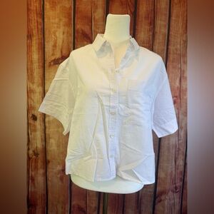 NWT Madewell Cropped Utility Button-Up Shirt, White, Oversized Small