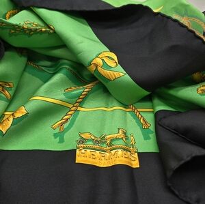 💚💛🖤Hermes Green, Gold and Black Silk Scarf/Handkerchief 💚💛🖤