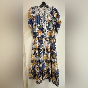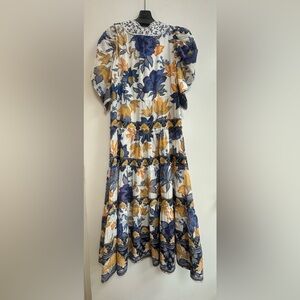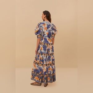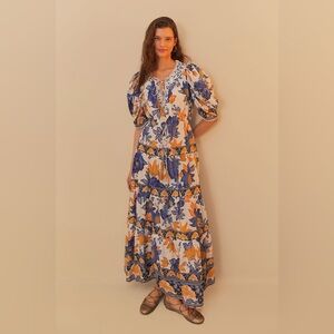 FARM Rio Off-White Summer Flowers Beaded Tassels Maxi Dress