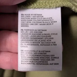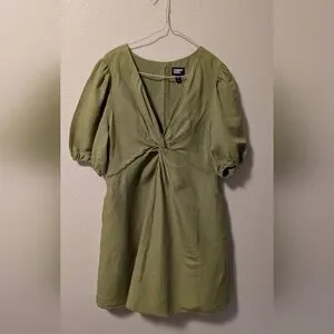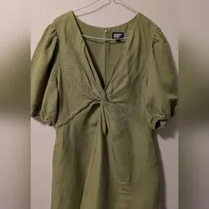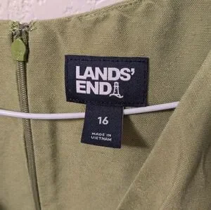 This relaxed green dress from Lands End features charming puff sleeves and a stylish knot front. Its short sleeves and comfortable fit make it a versatile addition to any wardrobe.