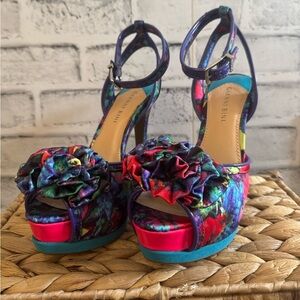 NWOT. Never worn. No box. Women’s. Gianni Bini. Multi color vibrant floral strappy colored heels. Thin high heel. Ankle strap. Size 6.5