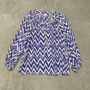 Lilly Pulitzer Top Womens Small Silk White Blue Chevron Popover Lightweight