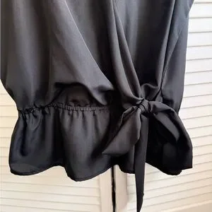 Michael Kors Black Wrap Tie Front Peplum Blouse