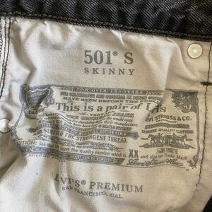 Levis 501 S High-Rise Grunge Button Fly Distressed Black Jeans W27 L28
