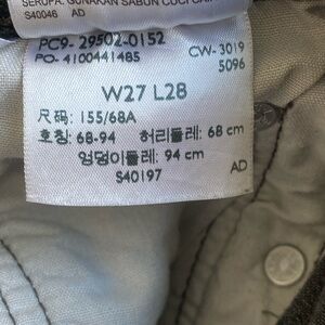 Largest cutout around left knee as in photo.