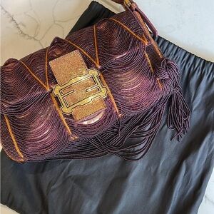 Fendi Baguette bag in draped copper beading with golden embroidery in very good conditions as you can see in photos. It’s a super rare vintage piece.