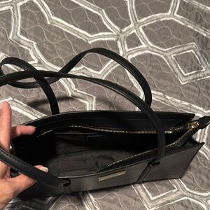 This Kate Spade shoulder bag in classic black offers a sleek and minimalist design, perfect for everyday use or professional settings. Crafted with a structured silhouette, it features medium-length dual handles for versatile carrying options. Its timeless style ensures it complements any outfit effortlessly. Use once, perfect condition.