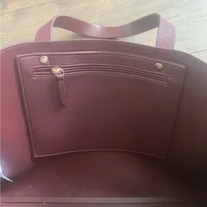 Rachel Zoe Deep Wine/Maroon Leather Tote Bag with Minimalist Design