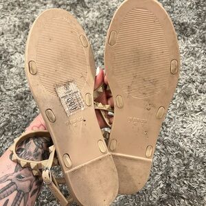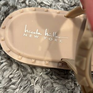 Nicole Miller | Tan Matte Studded Ankle Wrap Sandals size 9