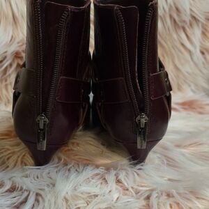 Size 8M These Vince Camuto ankle boots are EUC, worn only a few times. Short kitten heel and zipper up the back of the heel. See photos for measurements.