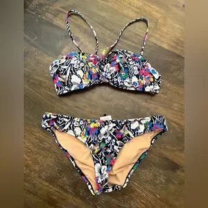 Colorful bikini with a striking floral pattern. Perfect for a bold beach look.