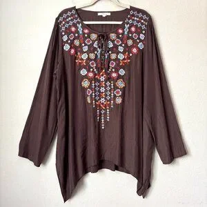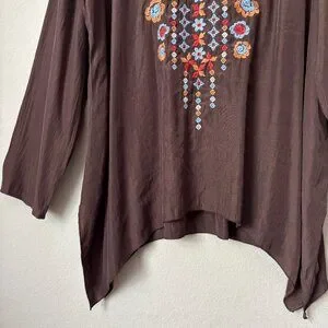 Andree by UNIT 1X Floral Embroidered Longline Sharkbite Hem Blouse Top