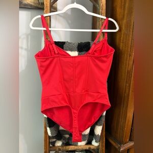 Popilush Shapewear Draped Bust Hourglass Corset Bodysuit - Red (XL)