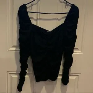 Reformation Black Ruched Long Sleeve Fitted Blouse Top Size M