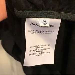 This elegant black blouse by Reformation showcases long sleeves with a ruched design, creating a sophisticated and fitted silhouette. The soft fabric and stylish details make it a versatile addition to any wardrobe.