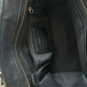 Sleek and stylish black leather tote. Perfect for everyday use. Features iconic Coach logo. Durable and versatile design. Large zip pocket and two additional pockets on the interior. Super spacious! Minor scratching on leather with more prominent scuffs on the shorter handles. Longer crossbody strap is removable and adjustable and has some fraying on the seams. All pictured. Pls note this is missing the signature Coach hangtag.