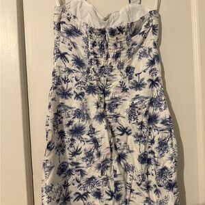 Abercrombie & Fitch Blue and White Palm Tree Print Linen Dress - Petite Small