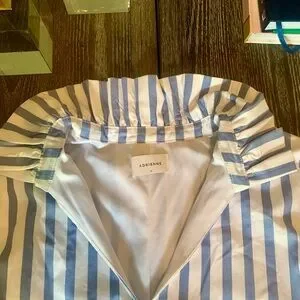 Boutique Blue and White Dress with Ruffle Neck