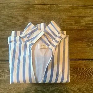 Coastal chic elegance! Never worn, enjoy perfect blend of style and comfort with this boutique Adrienne's blue and white striped dress!