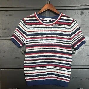 Uniqlo Red and White Crewneck Top with Nautical Stripes