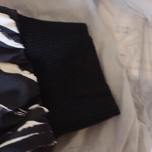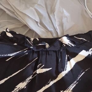 This Alfani blouse features a striking black and white graphic design, offering a relaxed fit for ultimate comfort. The flowing fabric and solid black band at the hem add a touch of sophistication to this stylish top. Ideal for those who appreciate modern aesthetics with a comfortable fit.