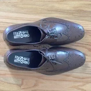 Salvatore Ferragamo NEW Men’s Brown Leather Wingtip Oxfords 10.5 D