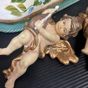 Set of 2 Vtg Cherub Angel Hanging Mandolin Figurines Decor 6.5" Christmas Manger