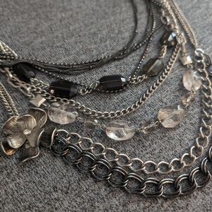 3/$15 | Mexx Multi-layer Chain Necklace with Beads, Flowers, Silver Toned
