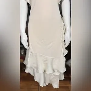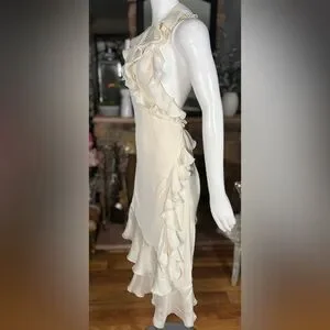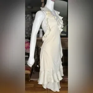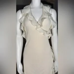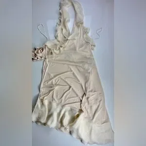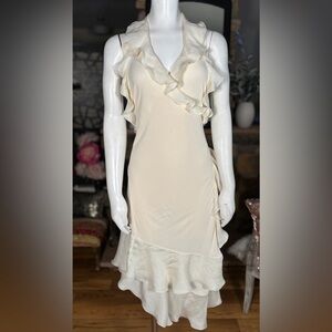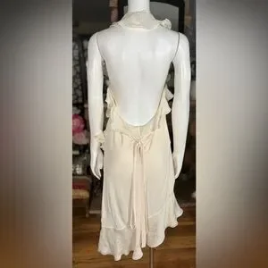 Jean Paul Gaultier Cream Silk & Rayon Backless Ruffle Halter Wrap Dress, Sz L